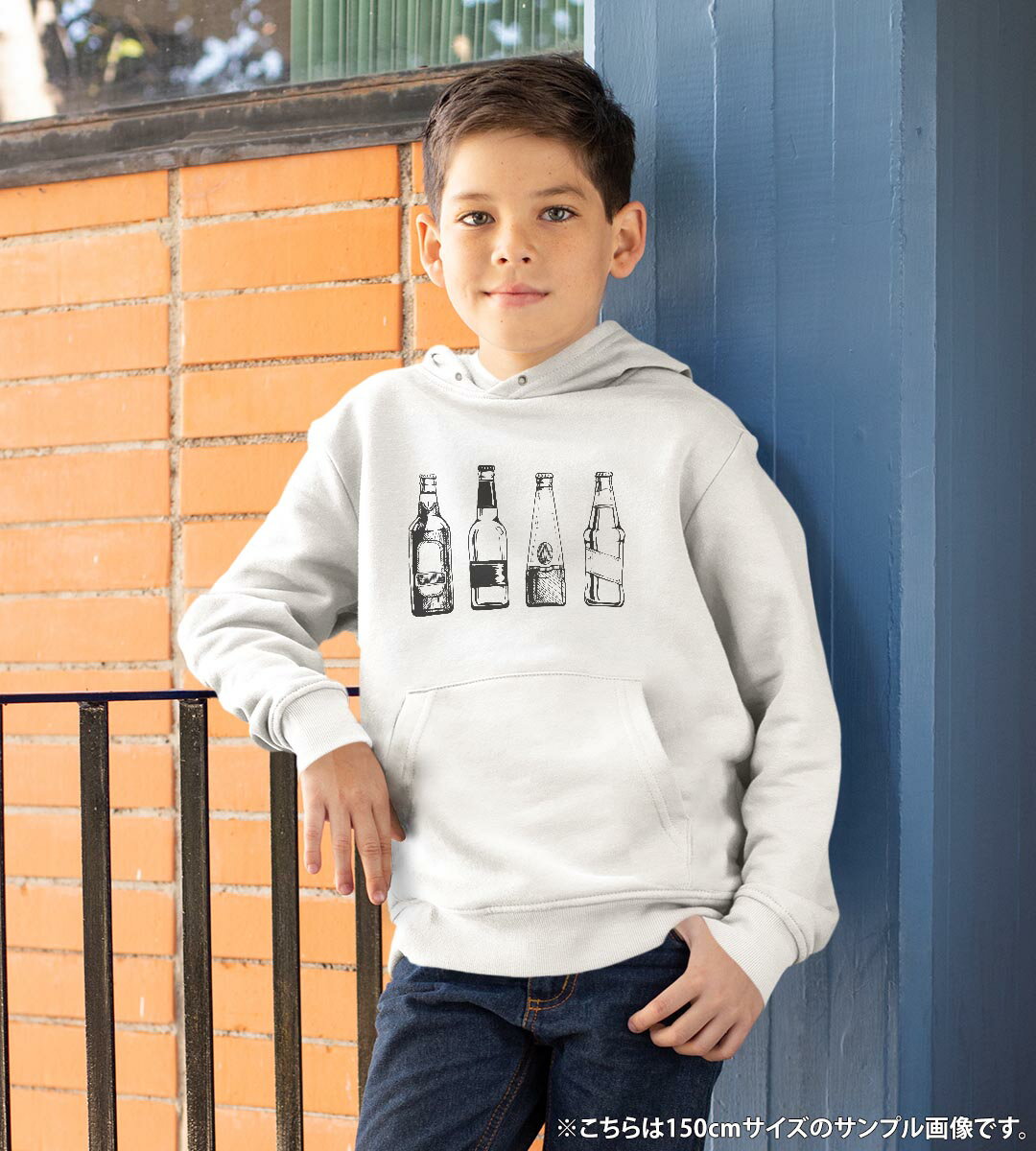 パーカー キッズ ホワイト グレー ブラック デザイン 110 130 150 parker hooded sweatshirt フーディ 白 黒 灰色 子供 男の子 女の子 010201 お酒 おしゃれ モノクロ